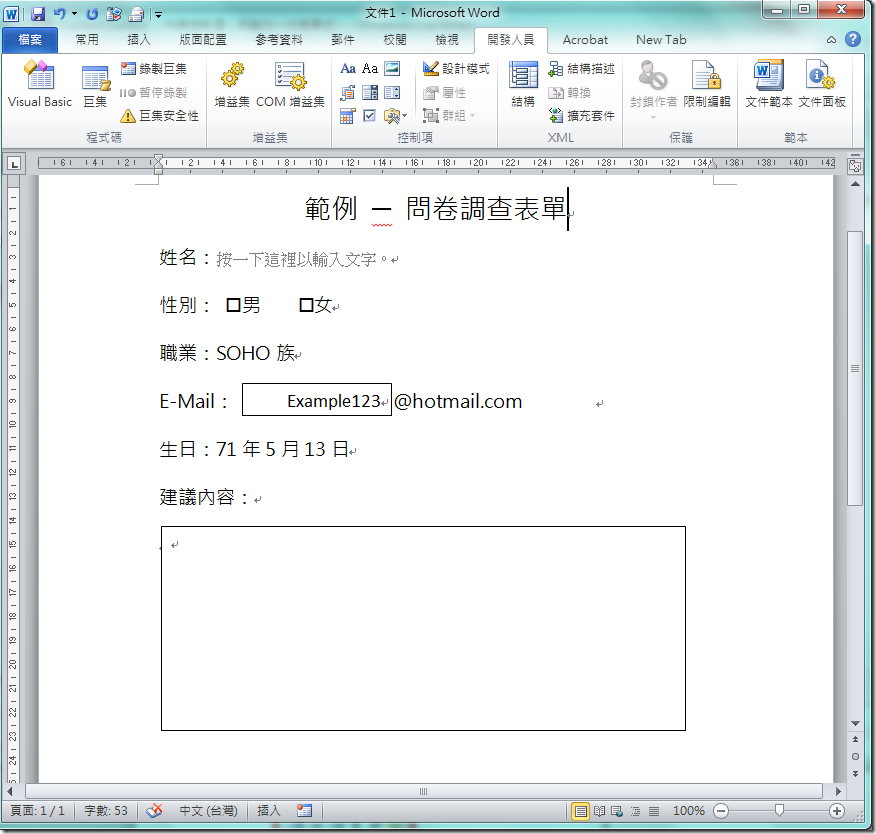 有空也可以去試著設計更美觀且富含 Content Control ( 內容控制項 ) 的電子表單喔!