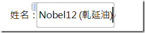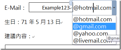 8. 而在 E-Mail 欄位中,請先接一個適切大小的「文字方塊」,然後在該文字方塊的後方再新增一個