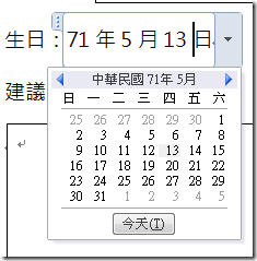 --- 此部份有使用 「 日期選擇器內容控制項 ( Date Picker Content Control ) 」